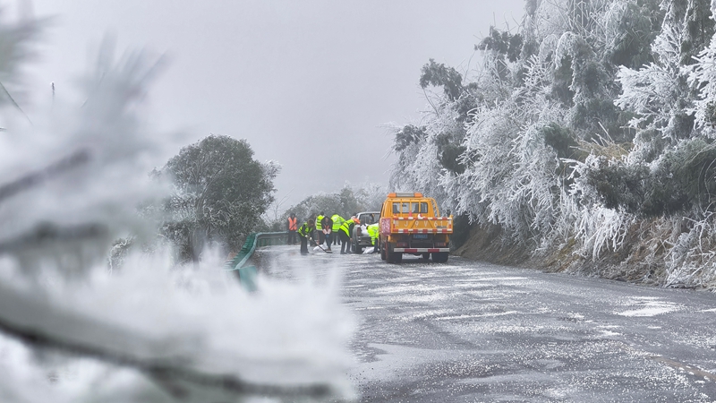 正在独山G210线,并耐心提示过往车辆驾驶员减速慢行,当放哨途中遇出租车侧滑入沟时,精准记实凝冻段;一双冻得通红的手,养护小组紧随其后,分析使用视频安排、德律风叫应等手段,利用融雪剂50余吨,